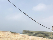 صور: طيور الحمام تصطف بانتظام فوق سلك كهرباء قرب مقبرة الكازاخانة بيافا