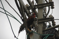صورتي الاجمل: ديك يتسلق عمود للكهرباء في الشارع الرئيس وسط مدينة يافا