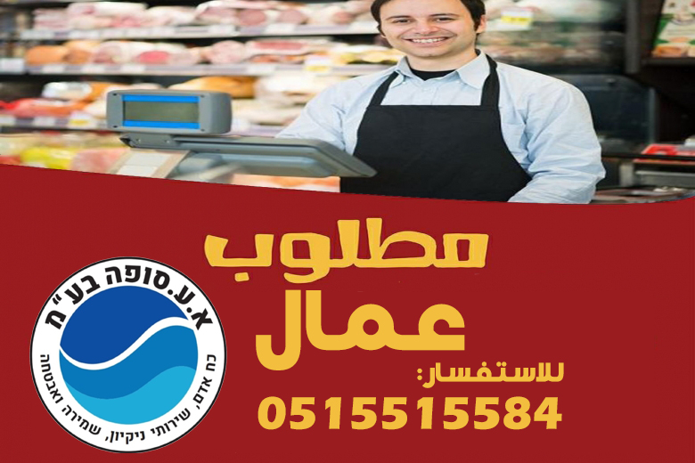تُعلن شبكة سوبرماركت في منطقة المركز عن حاجتها لعمال من الوسط العربي ويُفضل من منطقة يافا، اللد والرملة، الطيرة والطيبة.