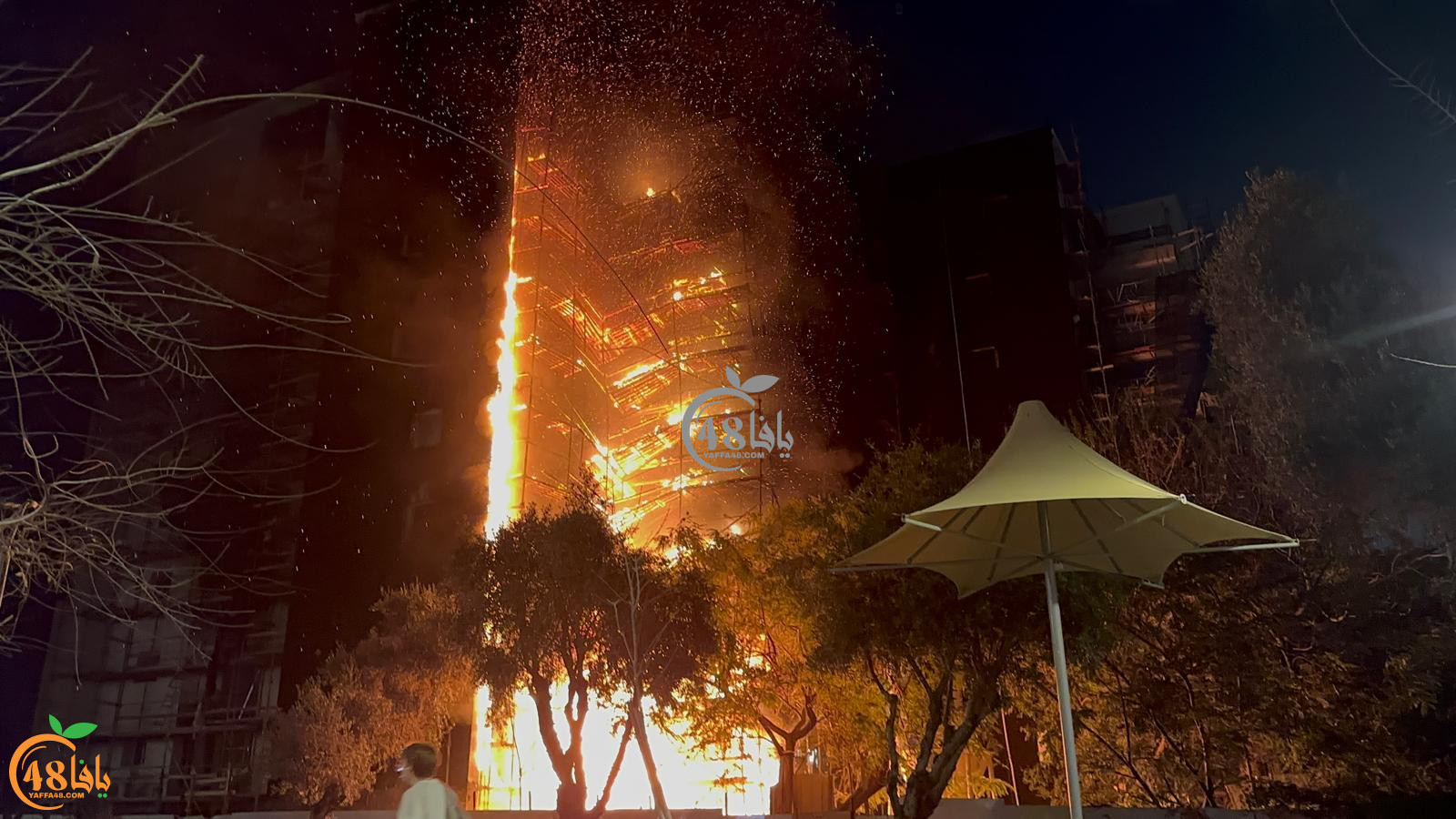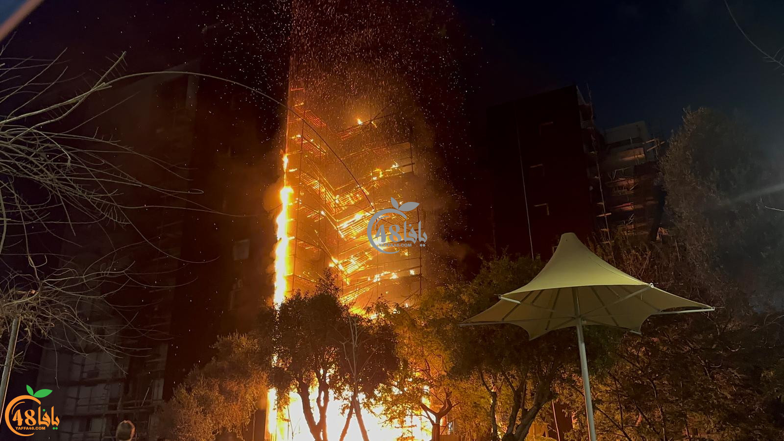لدى تلقي البلاغ وصلت 7طواقم إطفاء وانقاذ إلى جانب رافعة واتضح ان الحريق شب في المبنى علما ان سقالات פיגוםموجودة على المبنى .الطواقم تمكنت من تخليص عالقين ونقلهم للطواقيم الطبية وصفت حالة أحدهم بالخطيرة والباقي بين متوسطة وطفيفة.يجري تحقيق لمعرفة اسباب اندفاع الحريق.
