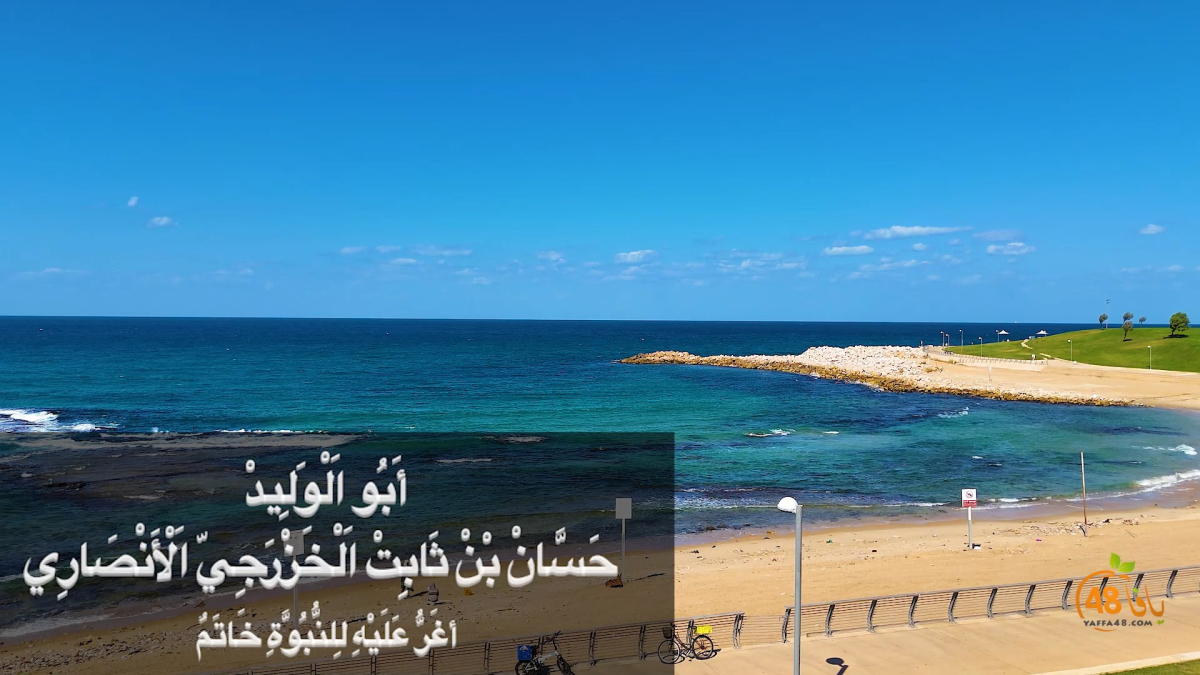ما زال موقع يافا 48 مستمر معكم في نشر مختارات من أجمل قصائد الشعر العربي، مع مقاطع جوية رائعة لمدينة يافا، وهذه المرة نستمع لقصيدة "أغَرُّ عَلَيْهِ لِلنُّبُوَّة خَاتَمٌ" للصحابي والشاعر حسّان بن ثابت والتي يقول فيها "