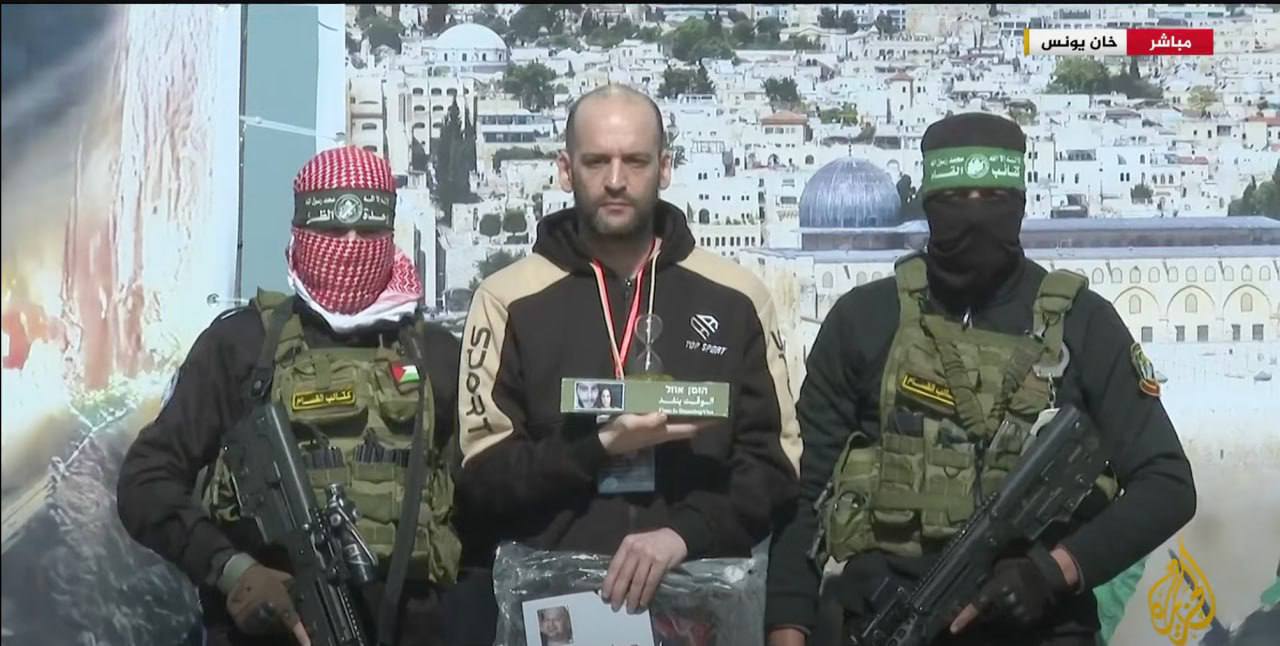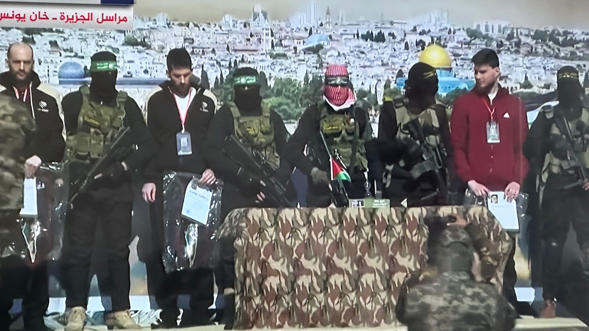 فضمن الدفعة السادسة من المرحلة الأولى من اتفاق وقف اطلاق النار بغزة سلمت عناصر تابعة لكتائب القسام -الجناح العسكري لحركة المقاومة الإسلامية حماس)- الأسرى الثلاثة للصليب الأحمر الدولي في خانيونس جنوب قطاع غزة.