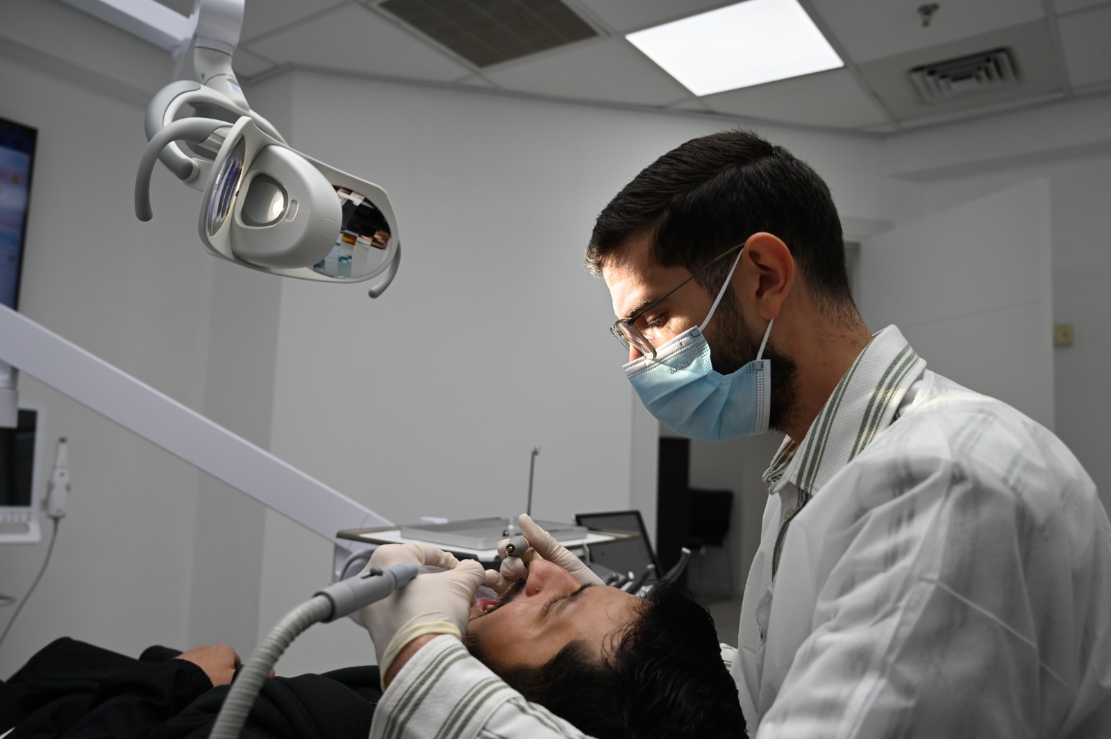 ويضيف "نعمل في العيادة باستخدام غاز الضحك والذي يزيل مخاوف ألم الأسنان، بالإضافة لاستخدام كاميرات صغيرة للتصوير داخل الفم، وأدخلنا نظام الذكاء الاصطناعي الذي يساعدنا كثيراً على منح المريض أفضل علاج ممكن".