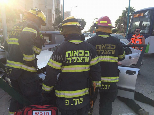 بالصور: إصابة متوسطة لسائق بحادث طرق بين مركبتين بمدينة اللد