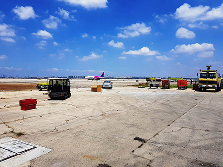 وقال الناطق بلسان نجمة داود الحمراء " ان طواقم سيارات الاسعاف وسيارات الاسعاف المكثف هرعت الى المطار من أجل متابعة الهبوط الاضطراري للطائرة " .
