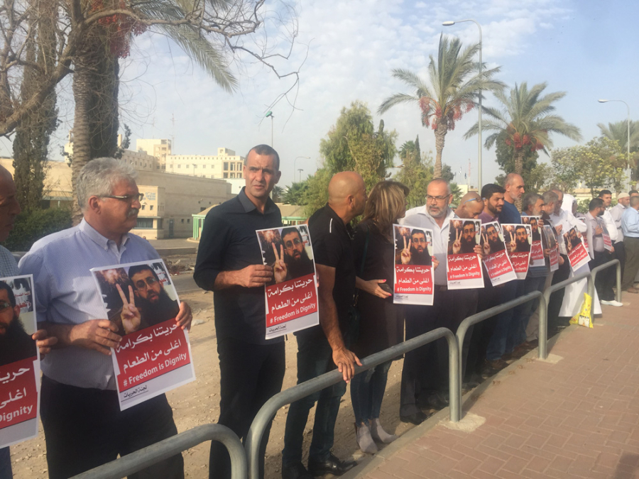 نظمت لجنة الحريات والدفاع عن الاسرى ، وقفة احتجاجية امام سجن ايالون في مدينة الرملة ، تضامنا مع الاسير خضر عدنان المضرب عن الطعام لاكثر من 55 يوماً احتجاجاً على اعتقاله من قبل النيابة العسكرية.