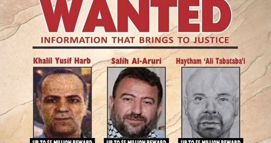 أعلنت الولايات المتحدة عن رصد مكافأة قدرها 5 ملايين دولار لمن يدلي بمعلومات عن كل من نائب رئيس حركة حماس صالح العاروري، والقياديين في حزب الله، خليل يوسف حرب، وهيثم علي طبطبائي.