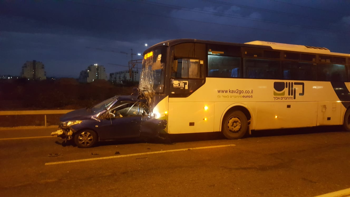 بالصور: حادث طرق بين حافلة ومركبة في اللد دون وقوع اصابات