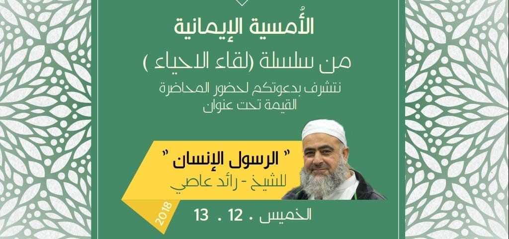 تدعوكم بهذا الحركة الاسلامية في مدينة الرملة للمشاركة في المحاضرة التي سيلقيها الشيخ رائد عاصي ضمن سلسة "لقاء الاحياء" في الرملة، وذلك اليوم الساعة 18.30 في بيت "سيد ابو بخيت" الكائن في حي اجاش بالرملة.