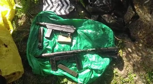 أثناء التفتيش، تم ضبط قطعتي سلاح اوتومتيكيتين بدائيتي الصنع من نوع كارلو وذخيرة ، تم إخباؤهم في فناء المنزل.