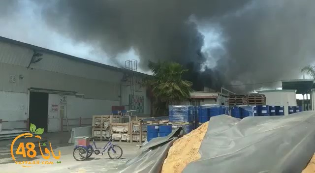 فيديو: حريق كبير داخل أحد المصانع في اللد وطواقم الاطفائية تهرع للمكان