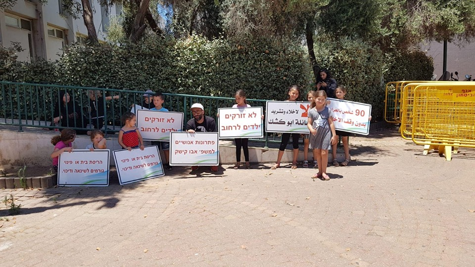 وقد تجمهّر عدد من المواطنين وأطفال عائلة ابو كشك على بوابة المحكمة قبل انطلاق الجلسة، ورفعوا شعارات منددة بسياسة التهجير والاخلاء، مطالبين بوقف نهائي لقرار الاخلاء والهدم.