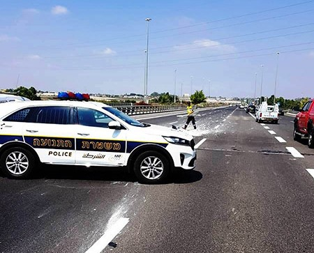 وقد تواجدت قوات من الشرطة في المكان وباشرت بالعمل على توجيه حركة السير، وقال المتحدث باسم الشرطة أنه يتوجب على السائقين البحث عن طرق وشوارع بديلة لحين ازالة حمولة الشاحنة وفتح الطريق كالمعتاد أمام حركة السير.