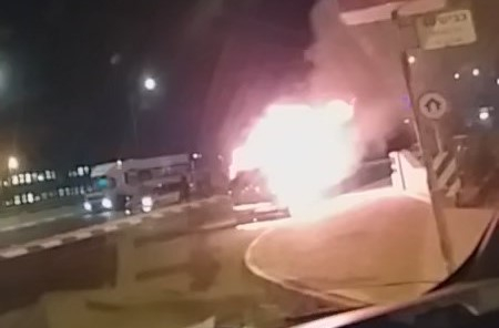 فيديو: فجر اليوم - احتراق مركبة في مدخل مدينة اللد