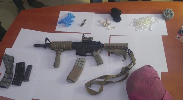 قال المتحدث باسم الشرطة في بيان عممه على وسائل الاعلام "خلال نشاط للشرطة، للحد من ظاهرة انتشار السلاح وإستخدامه، في الوسط العربي، قام أفراد الشرطة بالتعاون مع قوات من حرس الحدود، بتفتيش اماكن مختلفة في اللد، وخلال إحدى التفتيشات، عثر أفراد الشرطة على بندقية من نوع M16، ذخيرة وامشاط ومادة التي يُشتبه بأنها مخدر من نوع الهيراوين والكوكائين والحشيش، والتي تم تقسيمها لوجبات، وعليه تم إحالة سيدة مشتبهة للتحقيقات في مركز الشرطة.