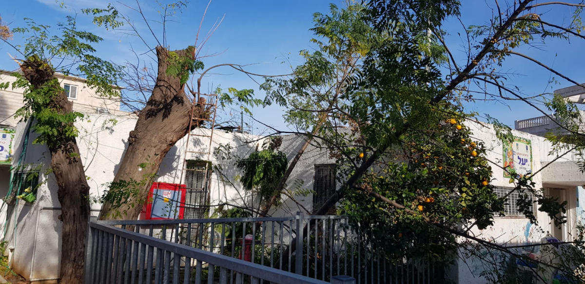 اللد: المطالبة بإزالة الأشجار بعد قطعها من ساحة حضانة "مانجو"