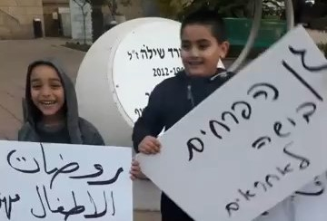 وقد شارك في الوقفة عدد من أطفال الروضات المذكورة، ورفعوا شعارات باللغتين العربية والعبرية للضغط على البلدية لتنفيذ مطالب الأهالي بصيانة هذه الروضات وترميمها.