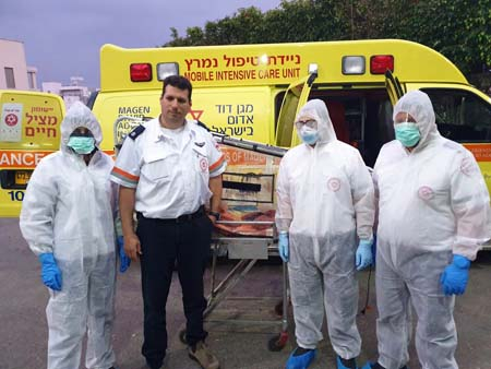 يشار الى أن طواقم نجمة داود الحمراء والمضمدين سوف يرتدون بدلات خاصة وكمامة وقبعة ونظارة وذلك حسب المعايير المتبعة في مثل هذه الحالات التي من الممكن أن تنقل الفيروس. وانه سيتم تطهير سيارات الإسعاف بعد الانتهاء من نقل الأشخاص وذلك من واجب ضمان سلامة أشخاص آخرين والذين سيتم نقلهم مستقبلا في نفس سيارات الإسعاف".