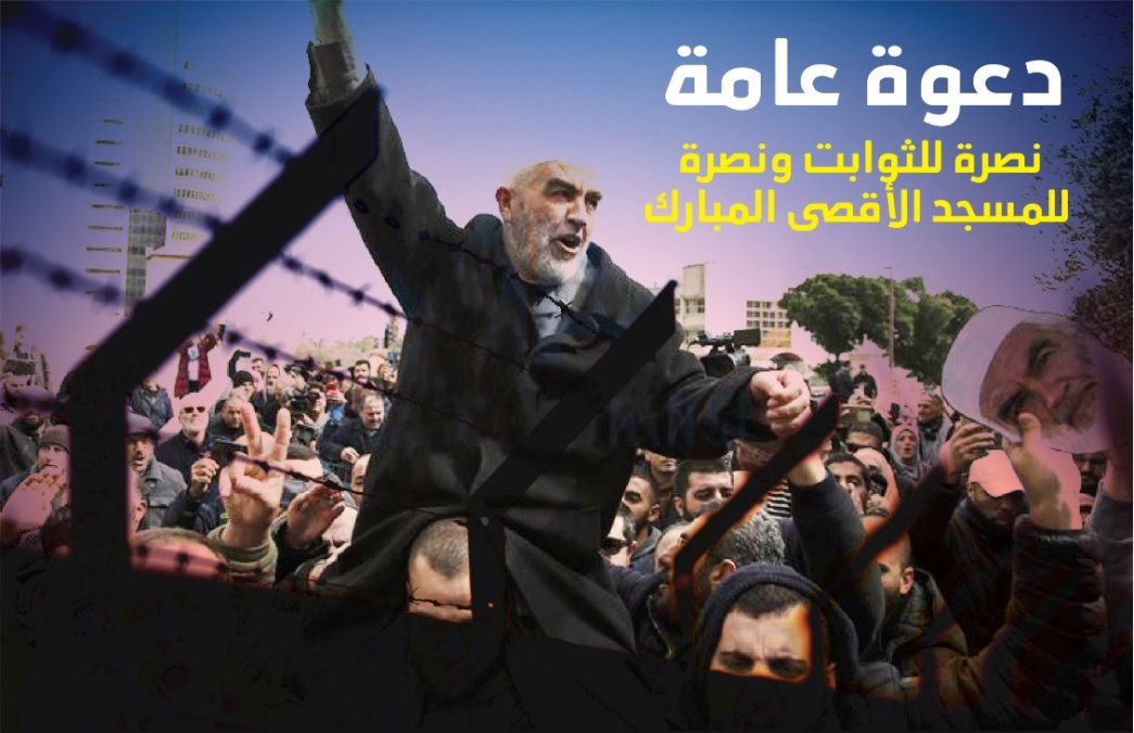 دعت لجنة المتابعة ولجنة الحريات والهيئة الشعبية لنصرة عشاق الاقصى، واللجنة الشعبية في أم الفحم، الأهالي في كافة انحاء البلاد الى توديع شيخ الأقصى، فضيلة الشيخ رائد صلاح صبيحة دخوله السجن في قضية ملف الثوابت.