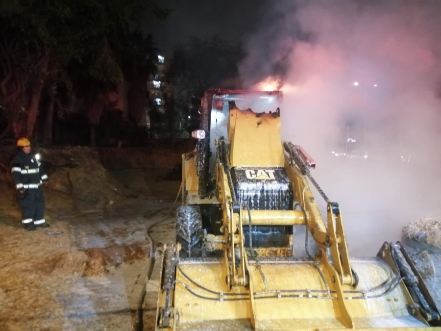صور: احتراق جرافة في مدينة يافا دون اصابات