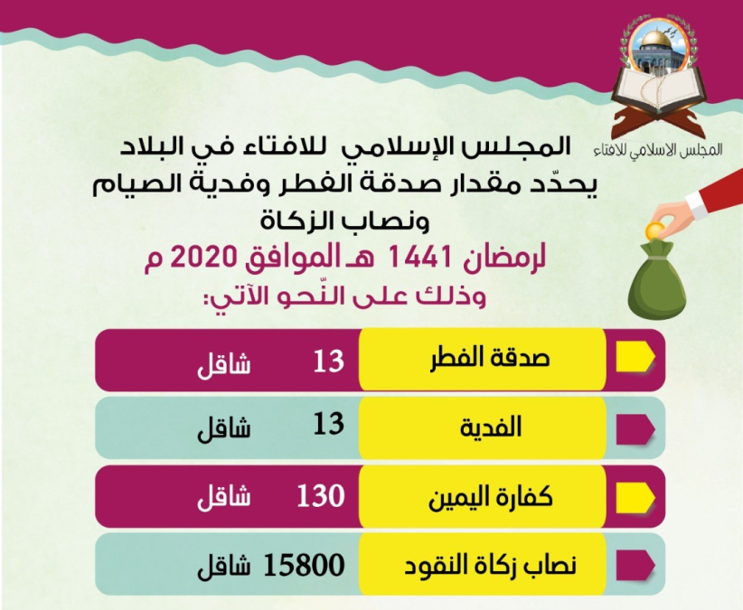 حدد المجلس الإسلامي للإفتاء في البلاد ، مقدار صدقة الفطر وفدية الصيام ونصاب الزكاة لرمضان 1441 هـ الموافق 2020 م؛ وذلك على النّحو الآتي : "