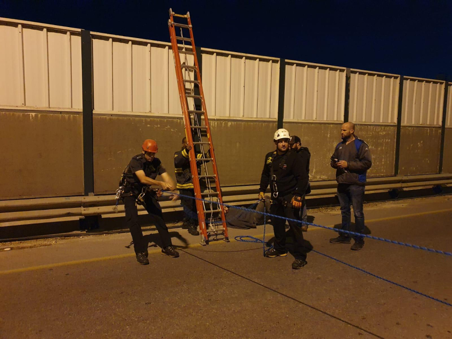 وجاء في بيان صادر عن المتحدث باسم سلطة الإطفاء والإنقاذ للإعلام العربي كايد ظاهر ان "طواقم الوحدة الخاصة من الاطفاء والانقاذ وصلت الى المكان وتمكنت من الوصول الى الشخص بعد اقناعه بالبقاء في مكانه. وقام افراد الوحدة بالوصول اليه وربطه بالحبال ورفعه الى الجسر دون إصابات".