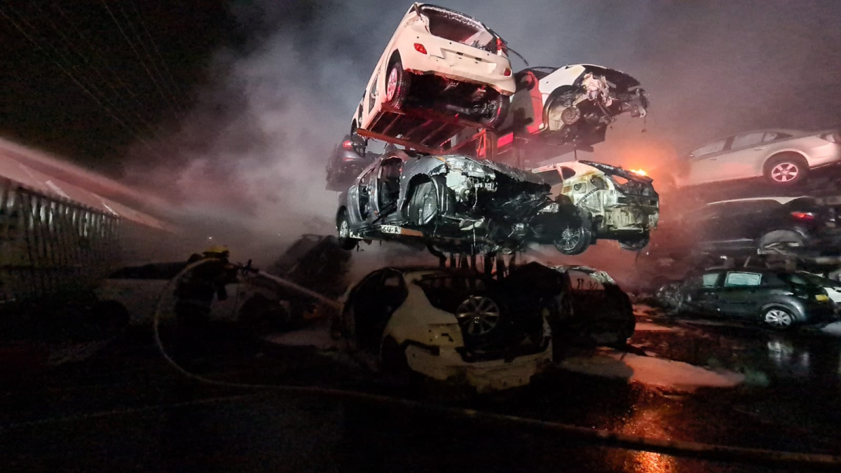 فيديو: حريق ضخم داخل مصف للسيارات في المنطقة الصناعية بمدينة اللد