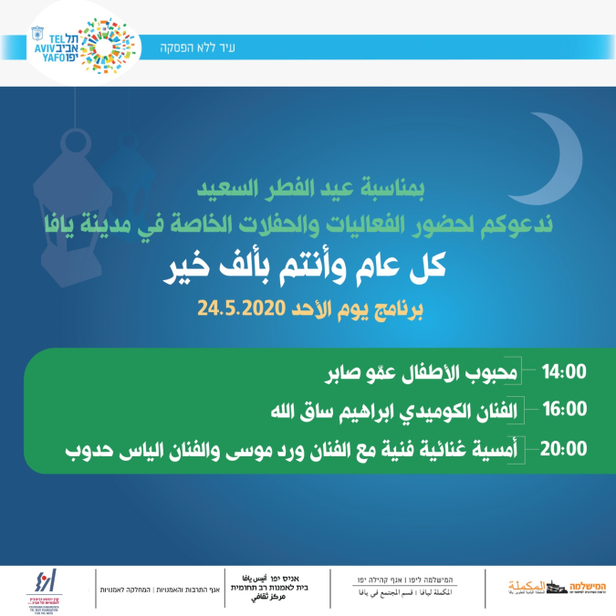 يُنظم قسم المجتمع في المكملة ليافا بالتعاون مع مؤسسة رابينوفيتش برنامجاً مليئاً بالفعاليات المميزة في عيد الفطر السعيد، وذلك عبر تقنية البث المباشر على مواقع التواصل الاجتماعي.