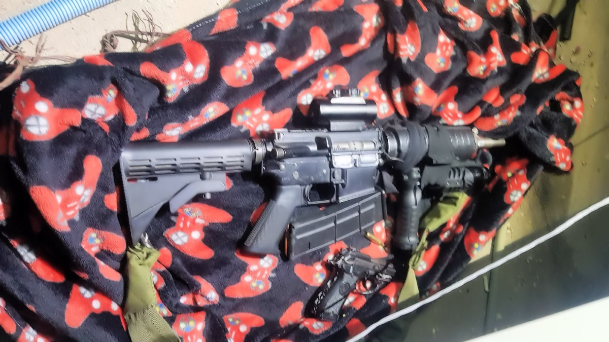 خلال التفتيش ضبطت الشرطة اسلحة غير قانونية من نوع M16 ومسدسين وبندقية من نوع كارلو وكميات كبيرة من الذخيرة ومخدرات خطرة بوزن 500 غرام.