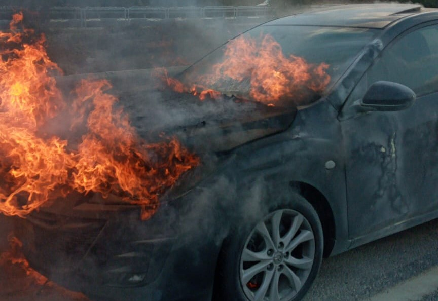وقد تم اخماد المركبة بواسطة المواطنين، واستدعاء طواقم الاطفائية للمكان.