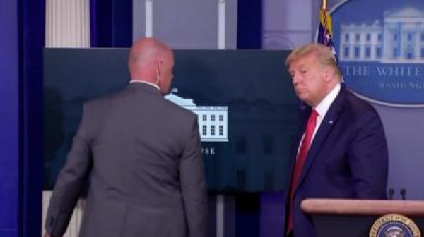 وأظهرت لقطات مصورة طلب الخدمة السرية إخراج ترامب من قاعة المؤتمر الصحفي بالبيت الأبيض.