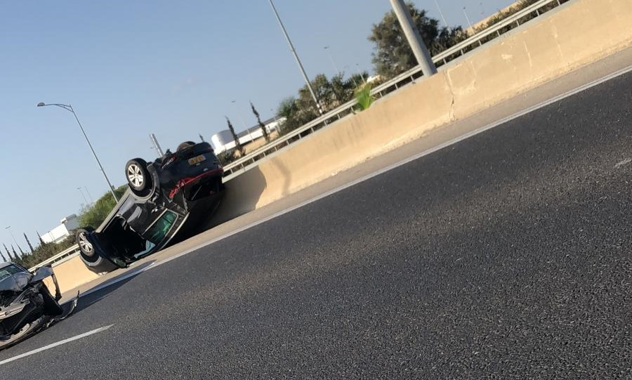 اصابة متوسطة بانقلاب مركبة على شارع 1 قرب اللد