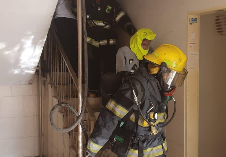 فيديو: حريق داخل مبنى في مدينة اللد وطواقم الاطفاء تنجح بتخليص عالقين