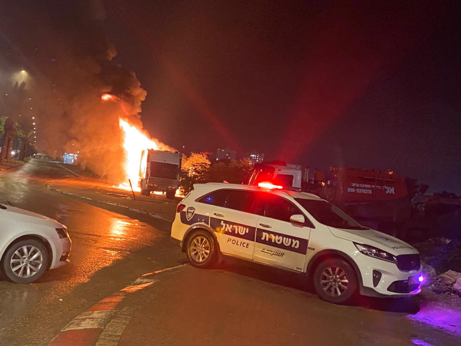 فيديو: اندلاع النيران بسيارات وشاحنات في مدينة اللد
