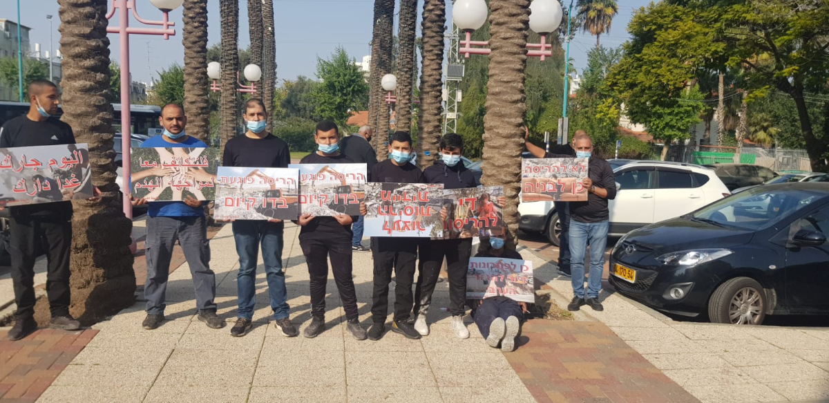 وقد رفع المشاركون في الوقفة الاحتجاجية لافتات طالبوا فيها بوقف فوري لأوامر الهدم التي صدرت بحق البيوت العربية في مدينة اللد والتي يتجاوز عددها 40 بيتاً.