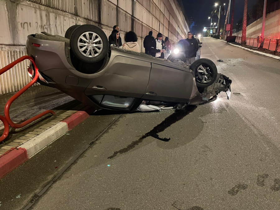 اللد: اصابة طفيفة لشخصين بانقلاب مركبة