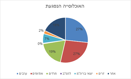 ومن المجتمعات التي مورست ضدها العنصرية: المجتمع العربي 27 % ، الاثيوبيون 27 % ، الحريديم 19 % الروس 7 % , آخرون 18 % الغرباء 2 %.