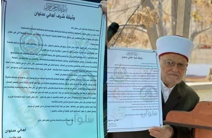 وتالياً نص وثيقة شرف أهالي سلوان: