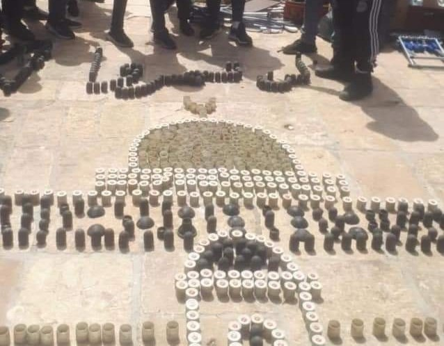 قام المعتكفون داخل المسجد الأقصى المبارك بجمع القنابل والرصاص الذي أطلقته الشرطة تجاههم في المسجد الأقصى وتحويلها إلى مجسم على شكل مصلى قبة الصخرة المشرفة وكتبوا عبارة : (لن تمرّوا )".