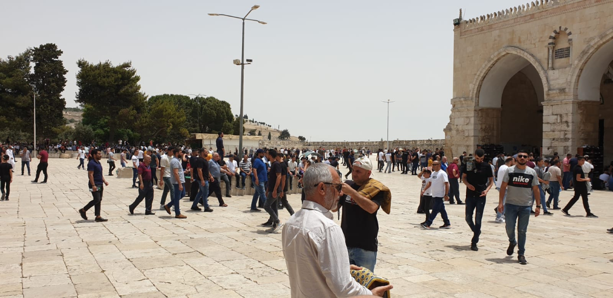 وقد تجمّع عشرات الآلاف من المصلّين في الأقصى، بعد أداء صلاة الجمعة، وردّدوا هتافات مؤيّدة للمقاومة، ومندّدة بالعدوان على غزّة والأراضي الفلسطينيّة، وعلى اثره قام عناصر الشرطة باقتحام باحات المسجد، لتتجدّد المواجهات.