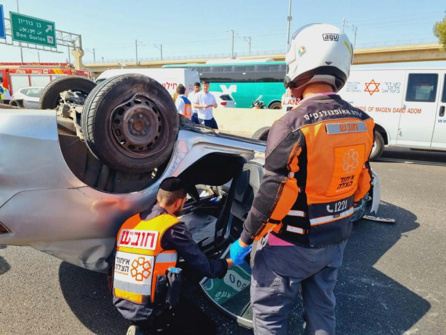 اصابة سيدتين بانقلاب مركبة على مدخل مدينة اللد