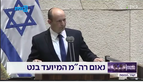 وانطلق مساء اليوم التصويت على تنصيب الحكومة الجديدة، حيث شهدت الجلسة أجواءً عاصفة، أثناء إلقاء الخطابات التي سبقت التصويت، وخاصّة أثناء خطاب بينيت الذي قوطع مرارا، من جانب أعضاء كنيست منتمين لأحزاب معسكر رئيس الحكومة المنتهية ولايته، بنيامين نتنياهو.