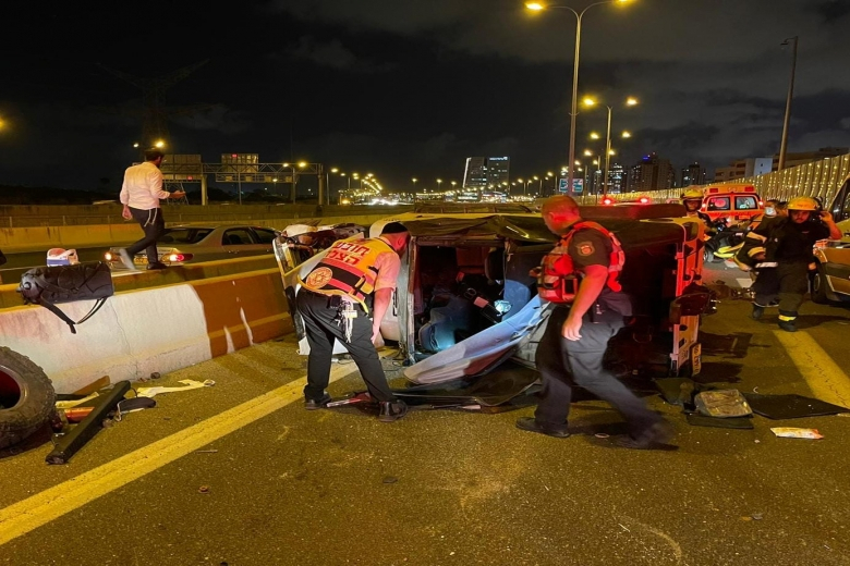 اصابة 3 اشخاص بانقلاب مركبة مقابل محطة وقود قرب اللد