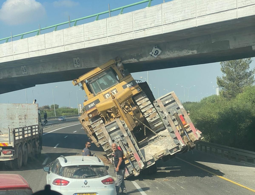 شاحنة تصطدم بجسر قرب مطار اللد واغلاق مقطع من شارع 1