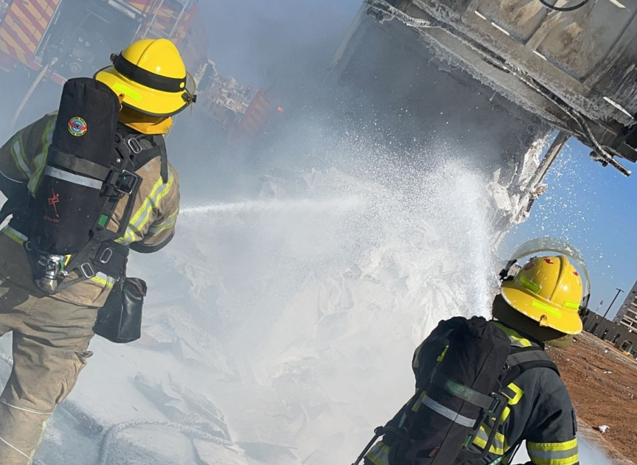وجاء في بيان كايد ظاهر "تعمل طواقم إطفاء وإنقاذ على اخماد حريق شبّ بشاحنة لجمع النفايات على شارع 40، عند مفرق اللد - المركز لاتجاه الشمال".