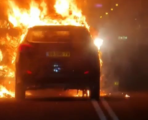 احتراق مركبة قرب مطار اللد الليلة الماضية