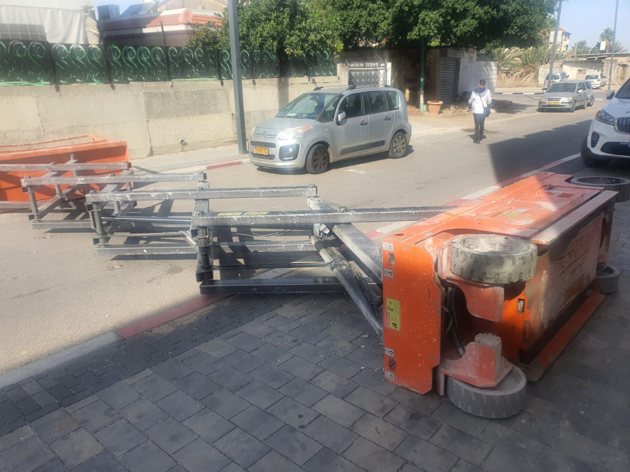 وقالت مصادر طبية " ان منصة تستخدم كرافعة انقلبت في موقع بناء في شارع بن يهودا في مدينة اللد، مما أسفر عنه اصابة العامل البالغ من العمر 30 عاماً".