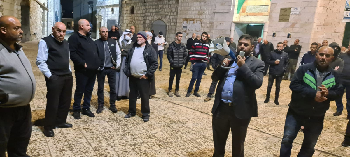 وقال الشيخ يوسف الباز إمام مسجد العمري الكبير "هذه ليست وقفة مخطط لها أمام المسجد، بل وقفة تلقائية جاءت رداً على عنصرية اسرائيل، وكل الممارسات العنصرية التي تُمارس ضدنا في هذه البلاد، هي ممارسات تحت رعاية السلطة الاسرائيلية الرسمية، وعندما يصرح رئيس البلدية بتصريحات عنصرية فإنه يستلهم هذه التصريحات من سياسات اسرائيل، المستوطنون الذين أطلقوا النار على موسى حسونة، أطلقوا النار استلهاما من سياسات اسرائيل العنصرية، المستوطنون الذين يستفزونا بهذه المسيرة هي مستلهمة من الغرور والاستكبار الاسرائيلي، لذلك نحن هنا من أجل أن نحمي مسجدنا وبيوتنا، ونحن لا نعتدي على أحد نحن بالكاد نسلم من ظلم اسرائيل وممارساتها البغيضة".