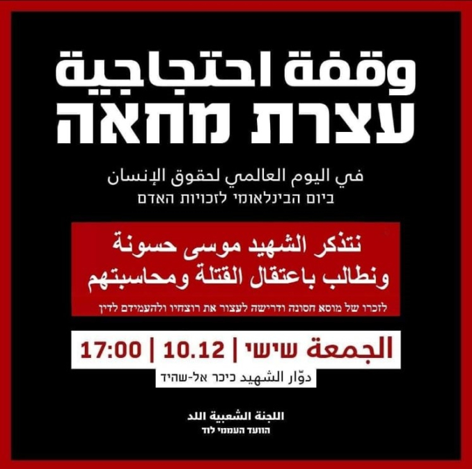 الجمعة: وقفة احتجاجية باللد للمطالبة بمحاسبة قتلة الشهيد موسى حسونة