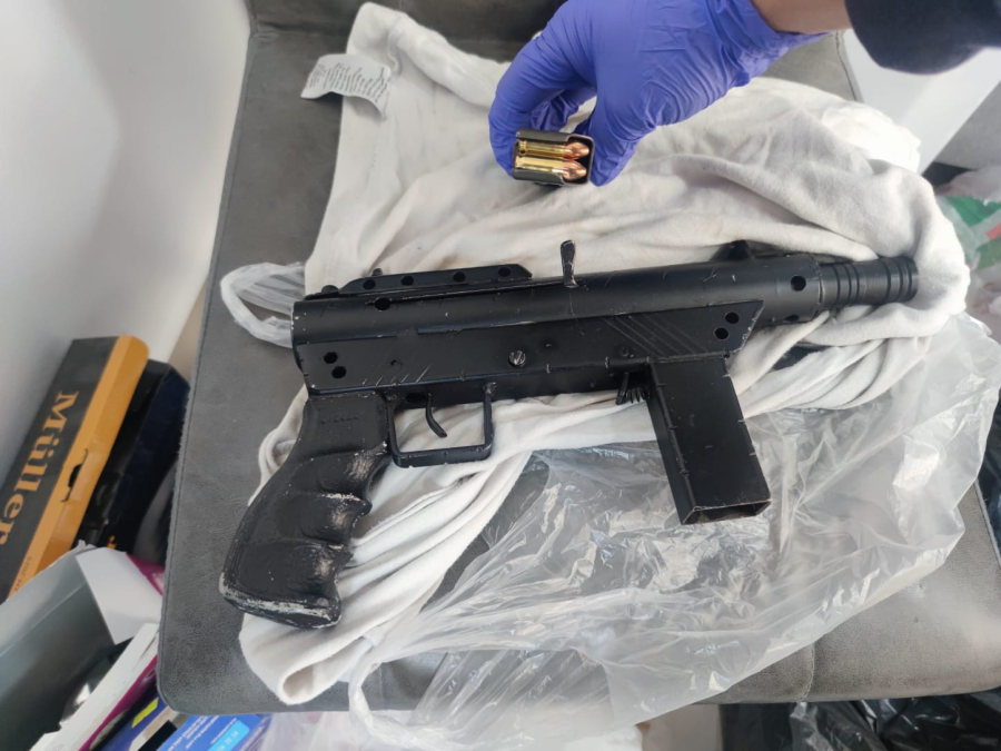 أفاد المتحدث باسم الشرطة في بيان عممه على وسائل الاعلام، أن الشرطة قامت صباح اليوم بمداهمة وتفتيش شقة سكنية بمدينة الرملة، وخلال البحث تم الكشف عن بندقية بدائية الصنع من نوع كارلو، بالاضافة الى كمية من مخدر القنب تزن كيلو غراماً، حيث تم ضبطهما ونقلهما الى المختبر لاستخراج مزيد من الأدلة.
